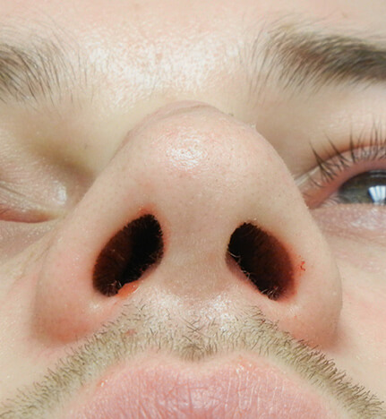 This rhinoplasty patient from Seattle had a severe septal deviation, causing an "S" curve right down the bridge of the nose. You can notice too, how the view from below shows cartilage on only one side. This is common for noses with a deviated septum. Correcting a deviated septum involves more than just Rhinoplasty. Septum surgery, or septoplasty, restructures the cartilaginous scaffolding of the nose's interior, sometimes using grafts or stents. Unlike Rhinoplasty, which is generally considered as cosmetic, Septum surgery is often indicated for medical reasons like chronic breathing problems and blockages. Surgery for deviated septum can be performed during a cosmetic rhinoplasty procedure, improving both the form and function of your nose. If you think you might have a deviated septum, give us a call or visit a double-board certified Facial Plastic & Reconstructive Surgeon/E.N.T. near you.